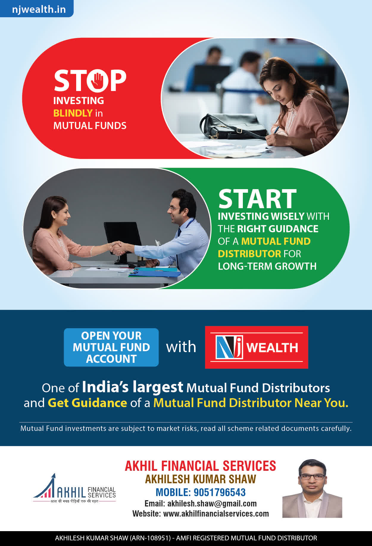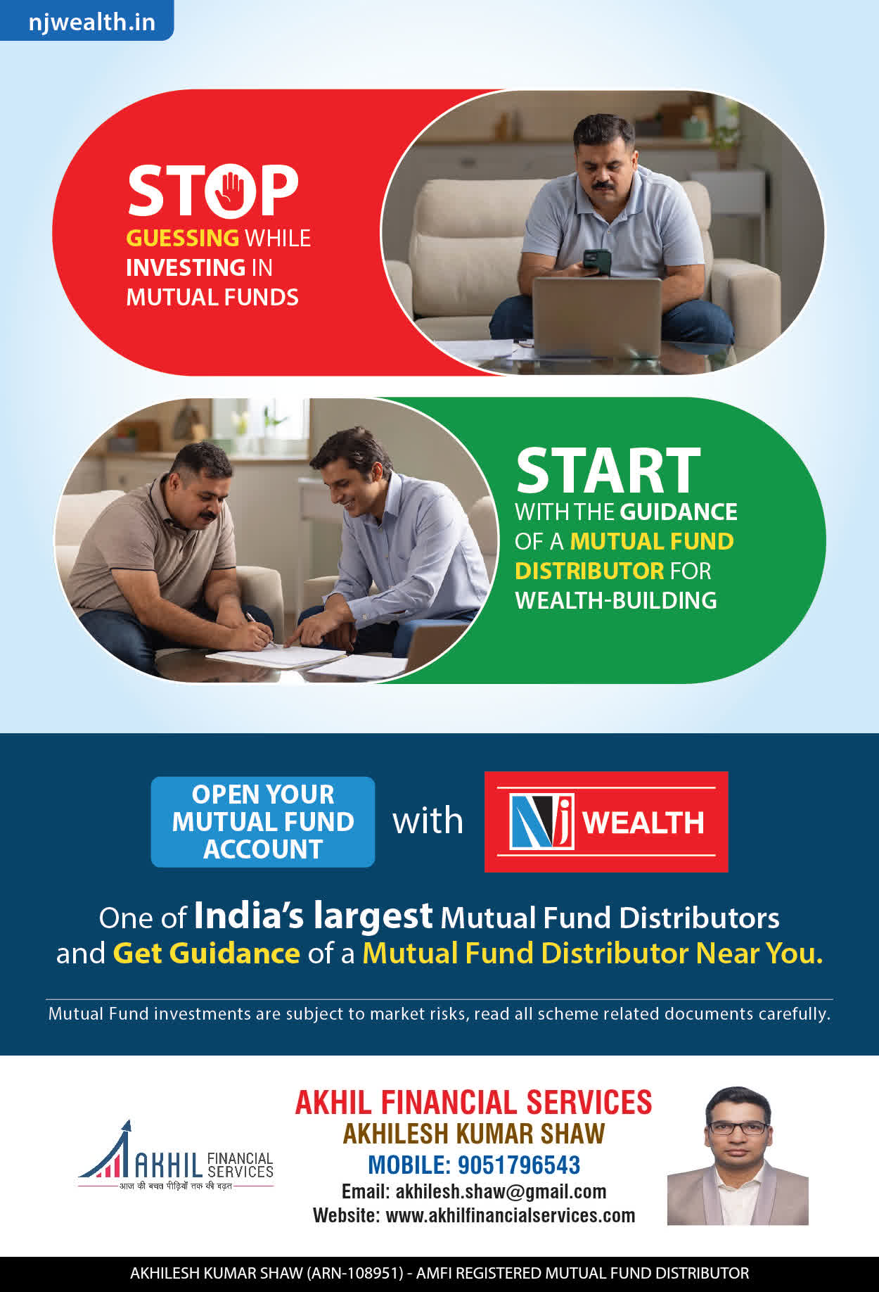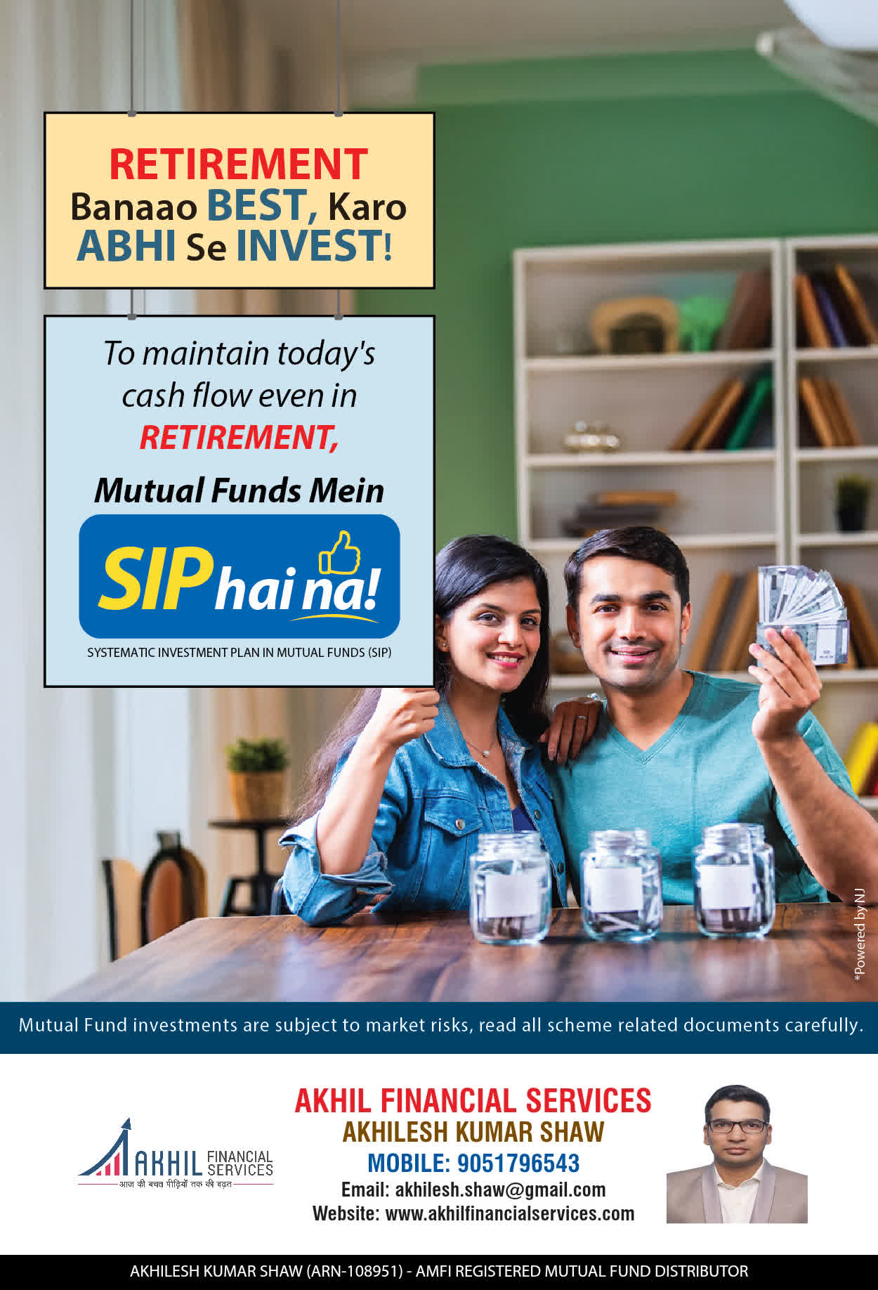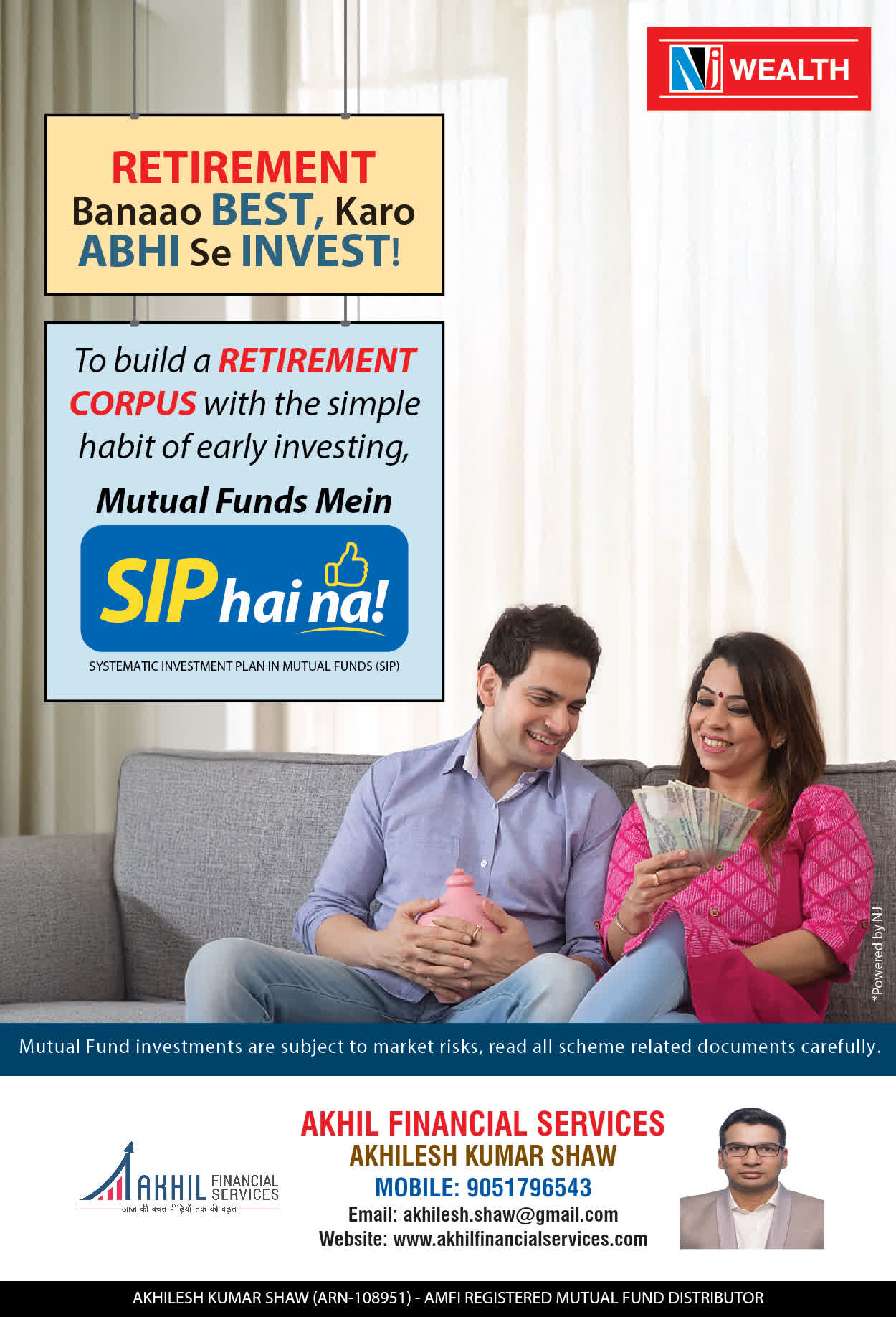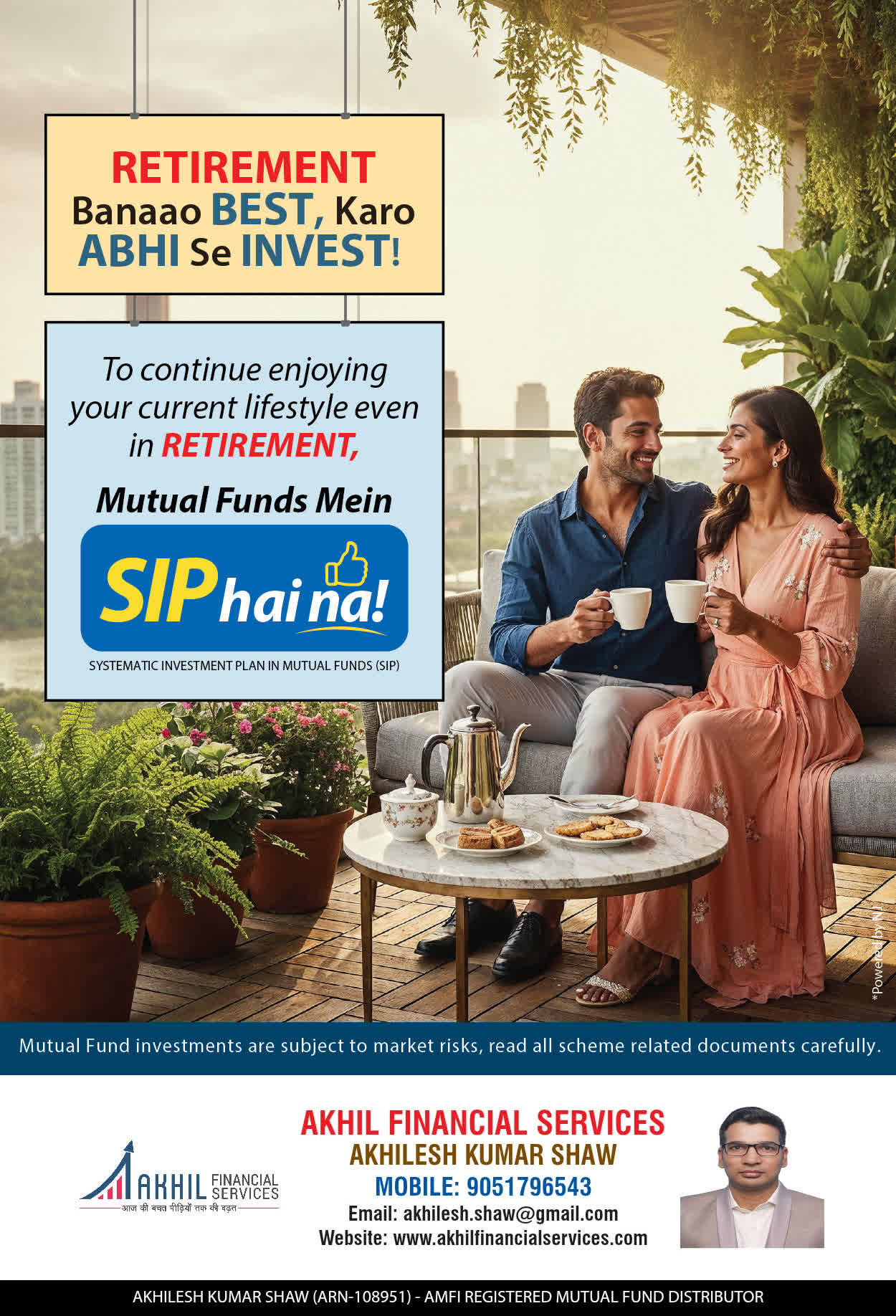 At, Akhil Financial Services our mission is to provide our clients with the best solutions in wealth creation and wealth management. We are driven to provide clients with simple, unbiased and uncluttered professiaonal advice that adds value to their quality of life and results in actionable solutions.