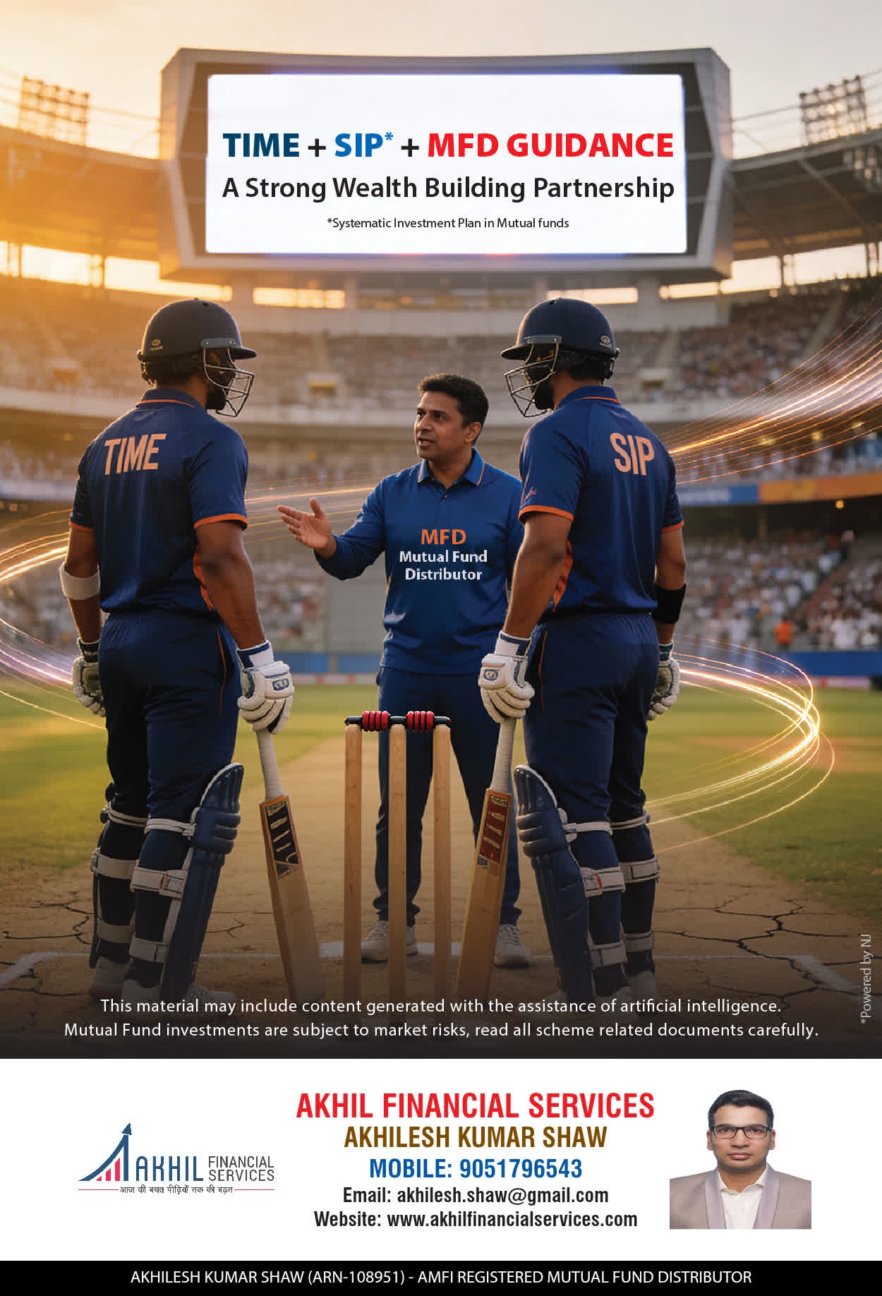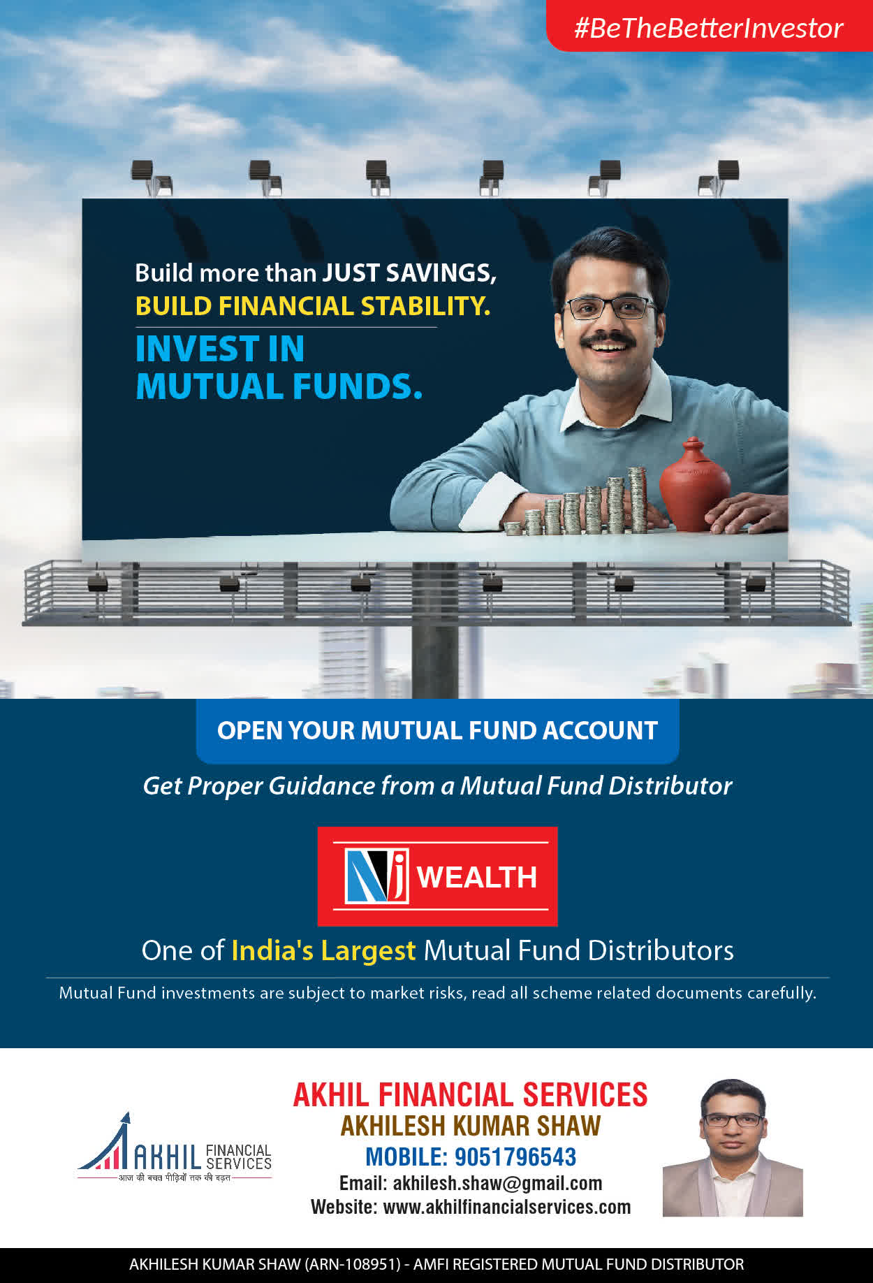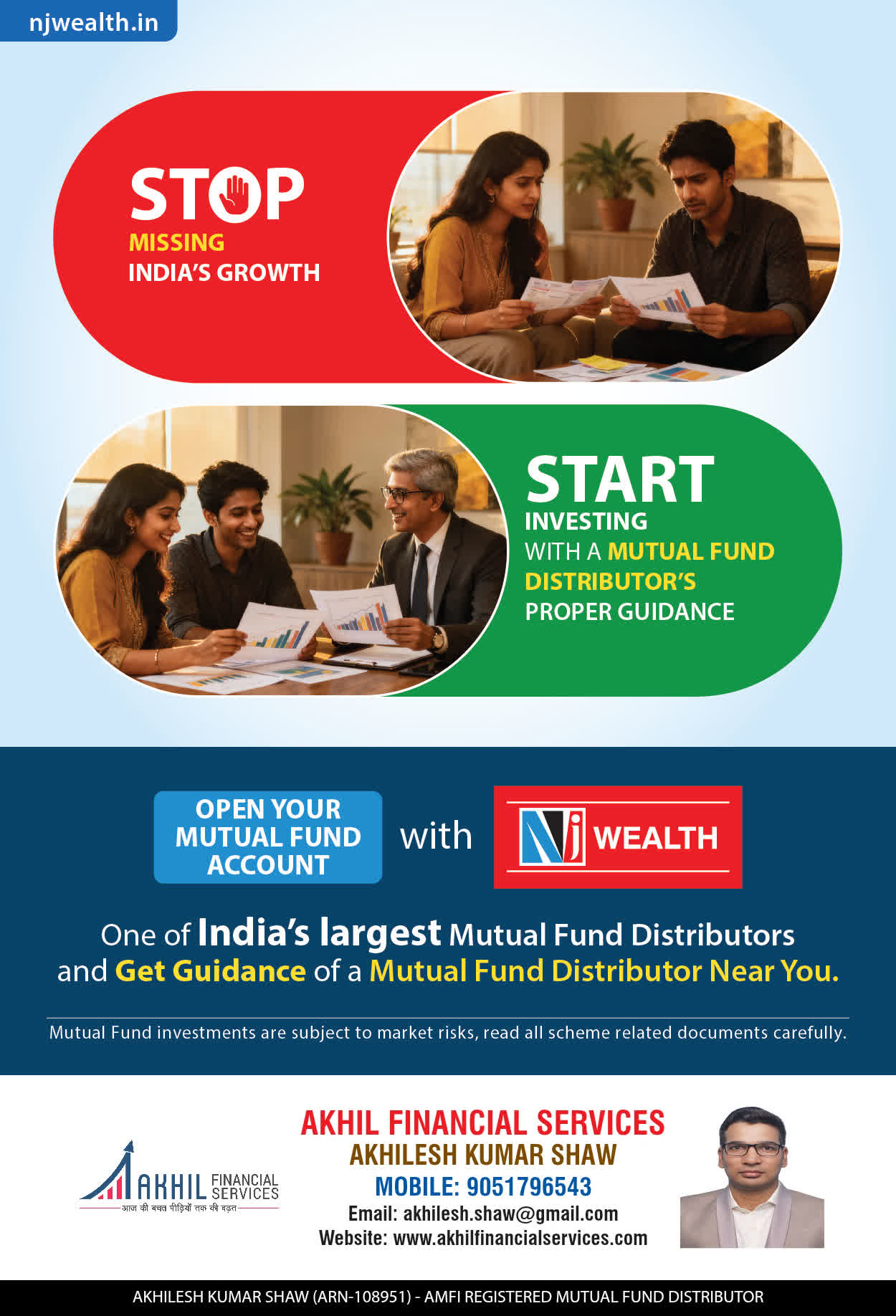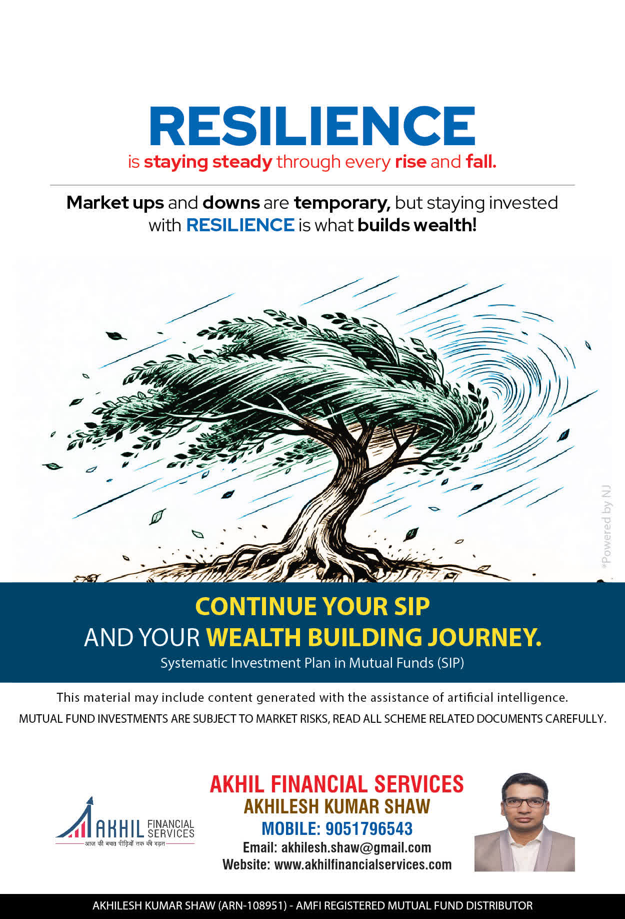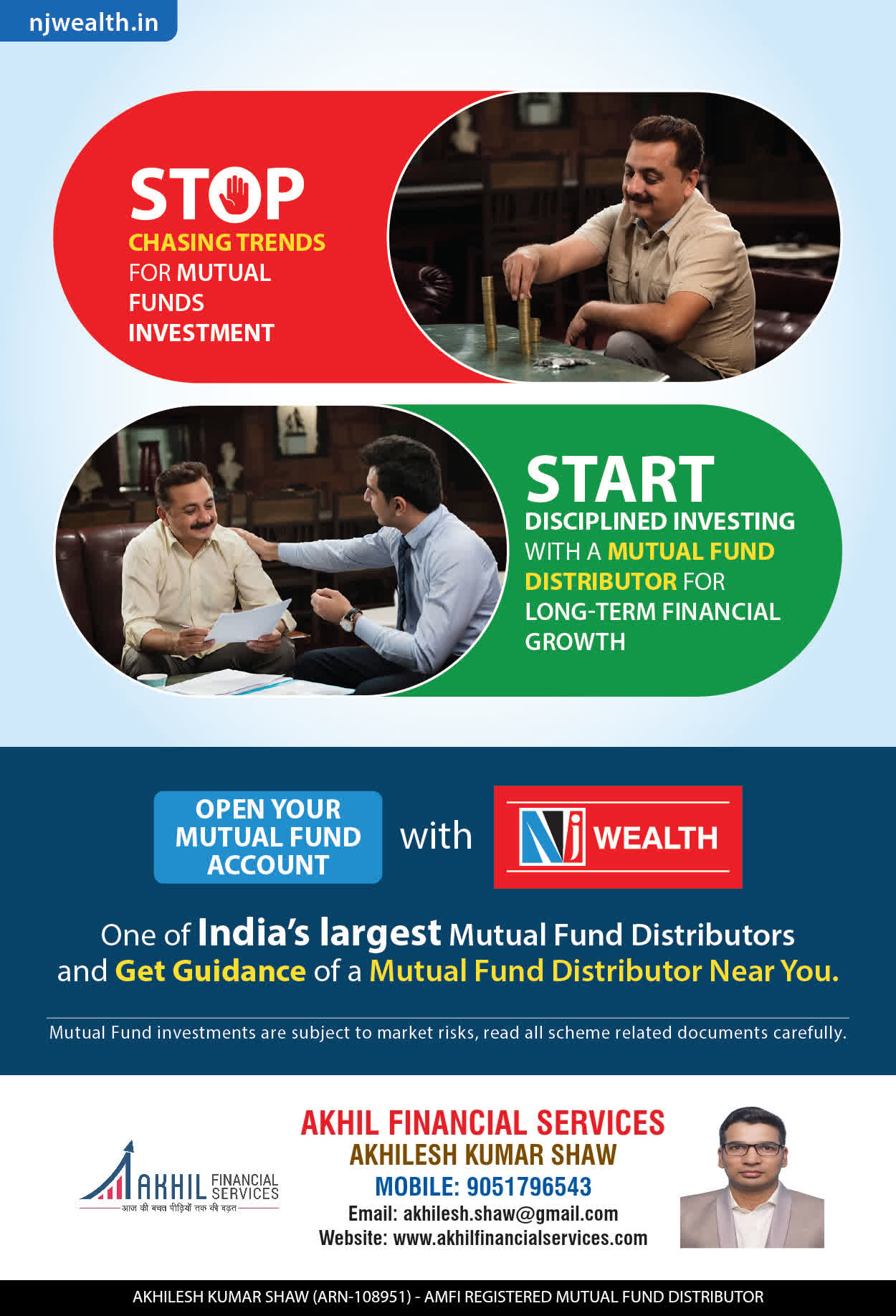 At, Akhil Financial Services our mission is to provide our clients with the best solutions in wealth creation and wealth management. We are driven to provide clients with simple, unbiased and uncluttered professiaonal advice that adds value to their quality of life and results in actionable solutions.