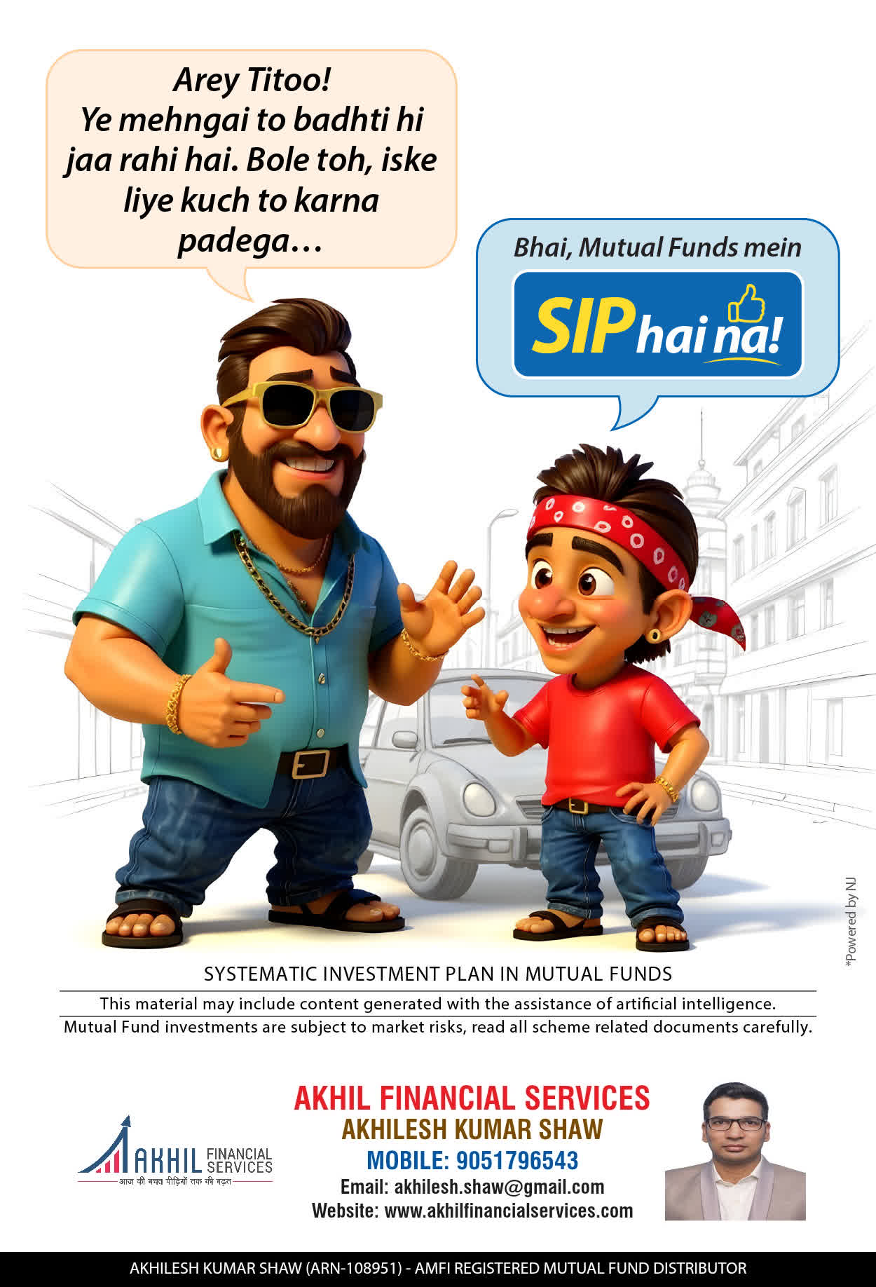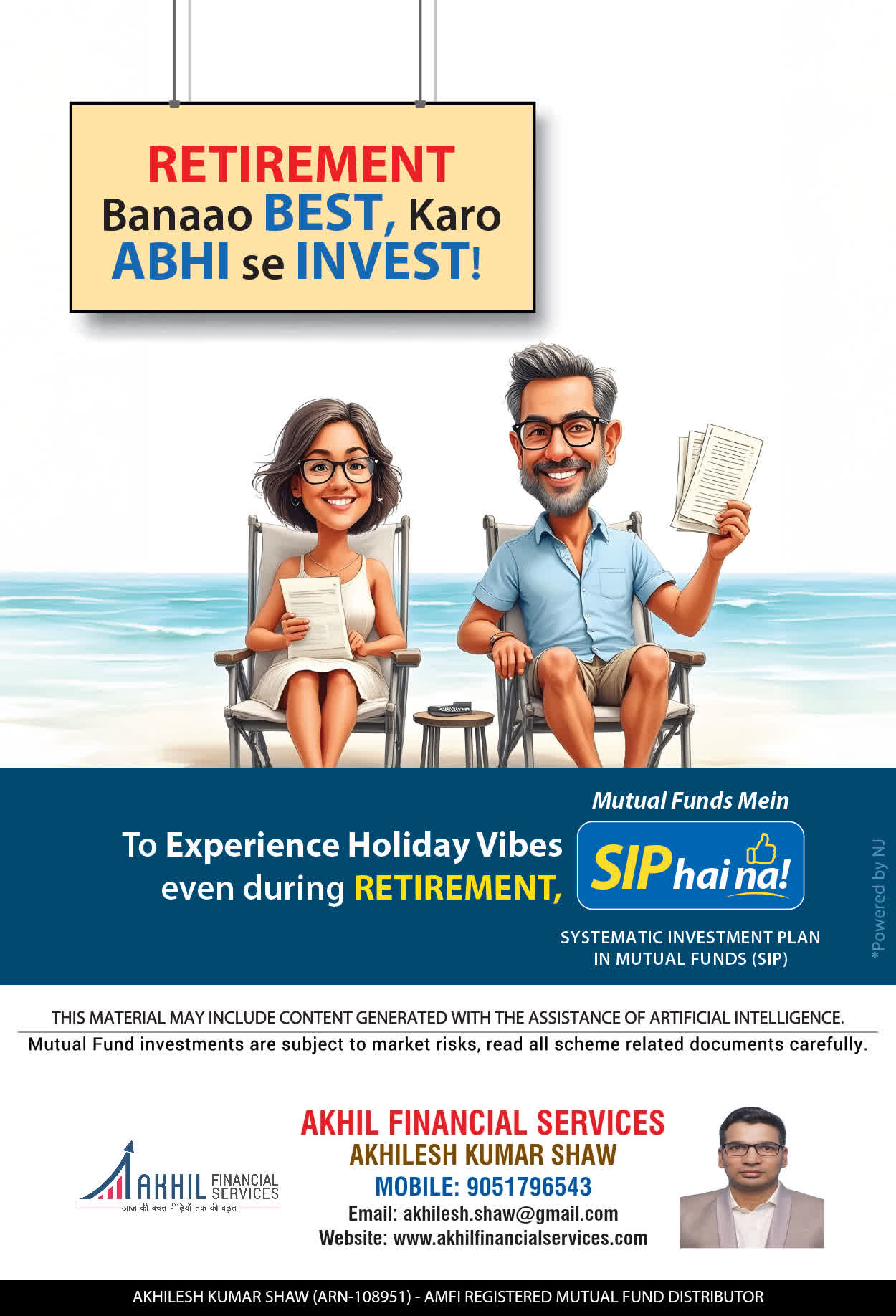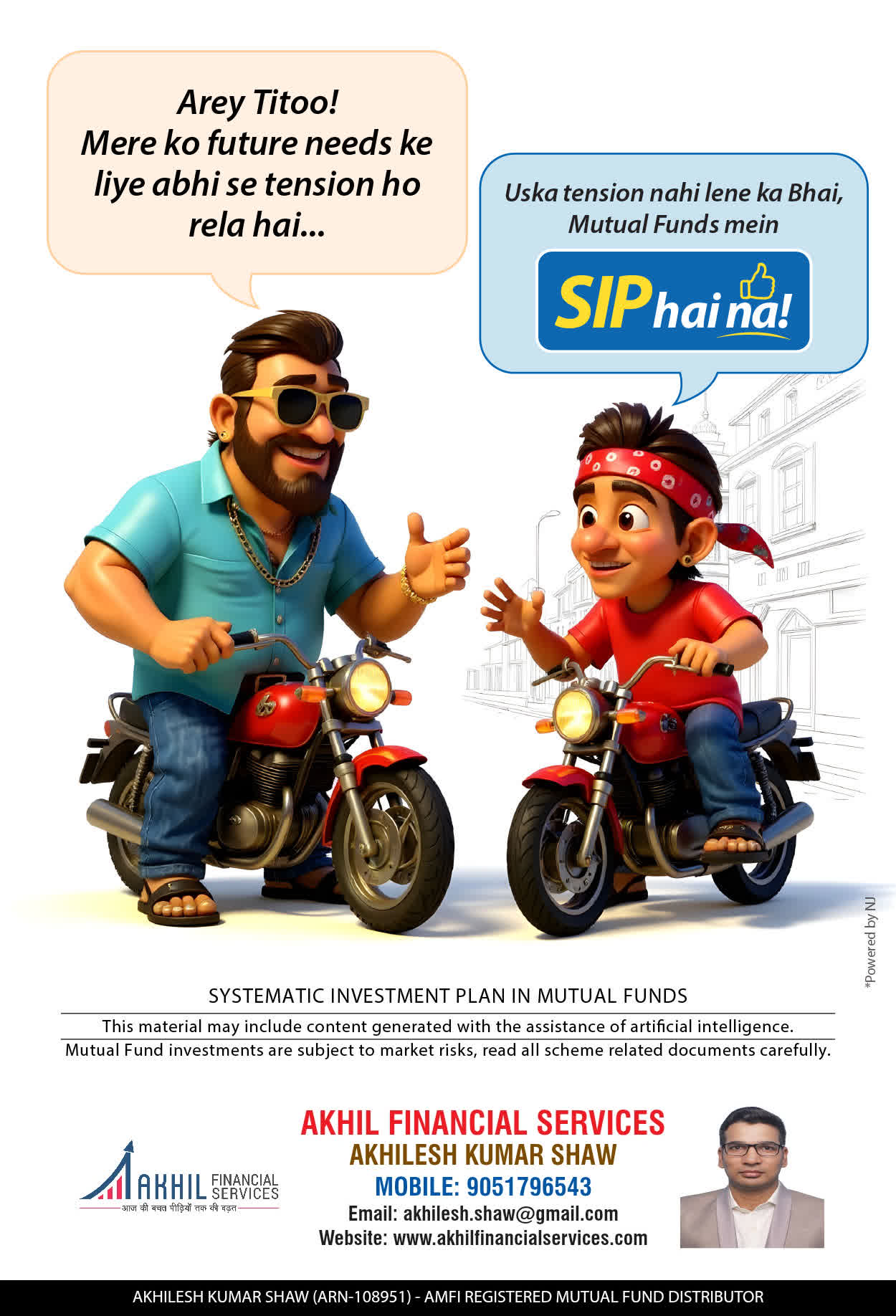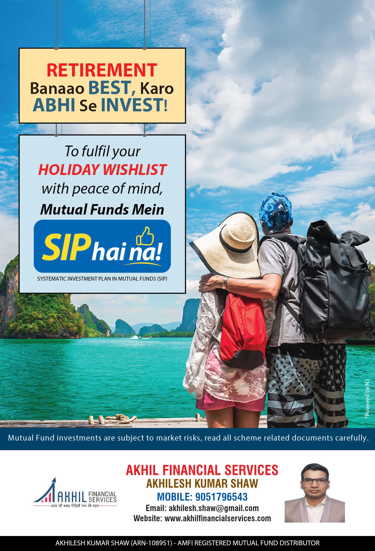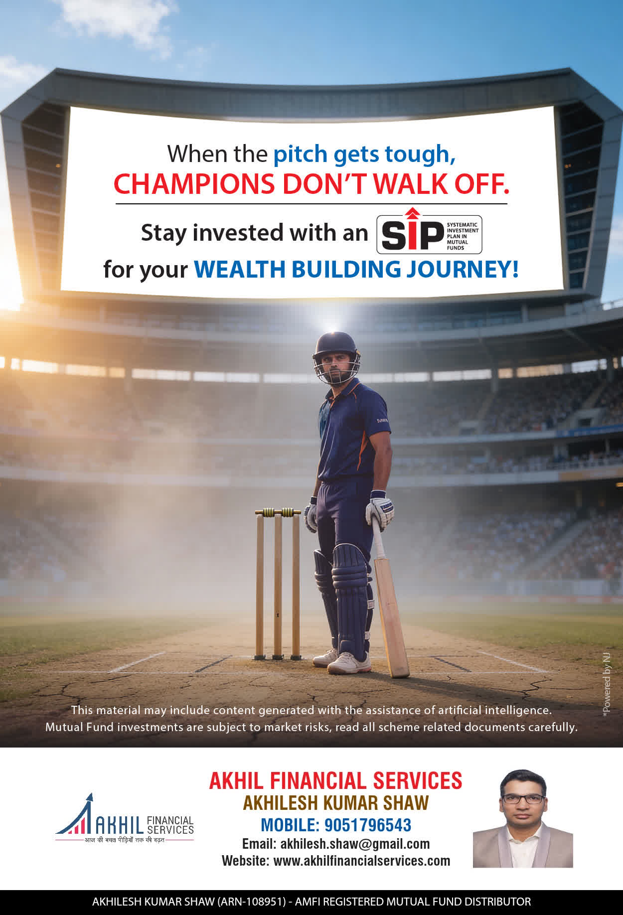 At, Akhil Financial Services our mission is to provide our clients with the best solutions in wealth creation and wealth management. We are driven to provide clients with simple, unbiased and uncluttered professiaonal advice that adds value to their quality of life and results in actionable solutions.
